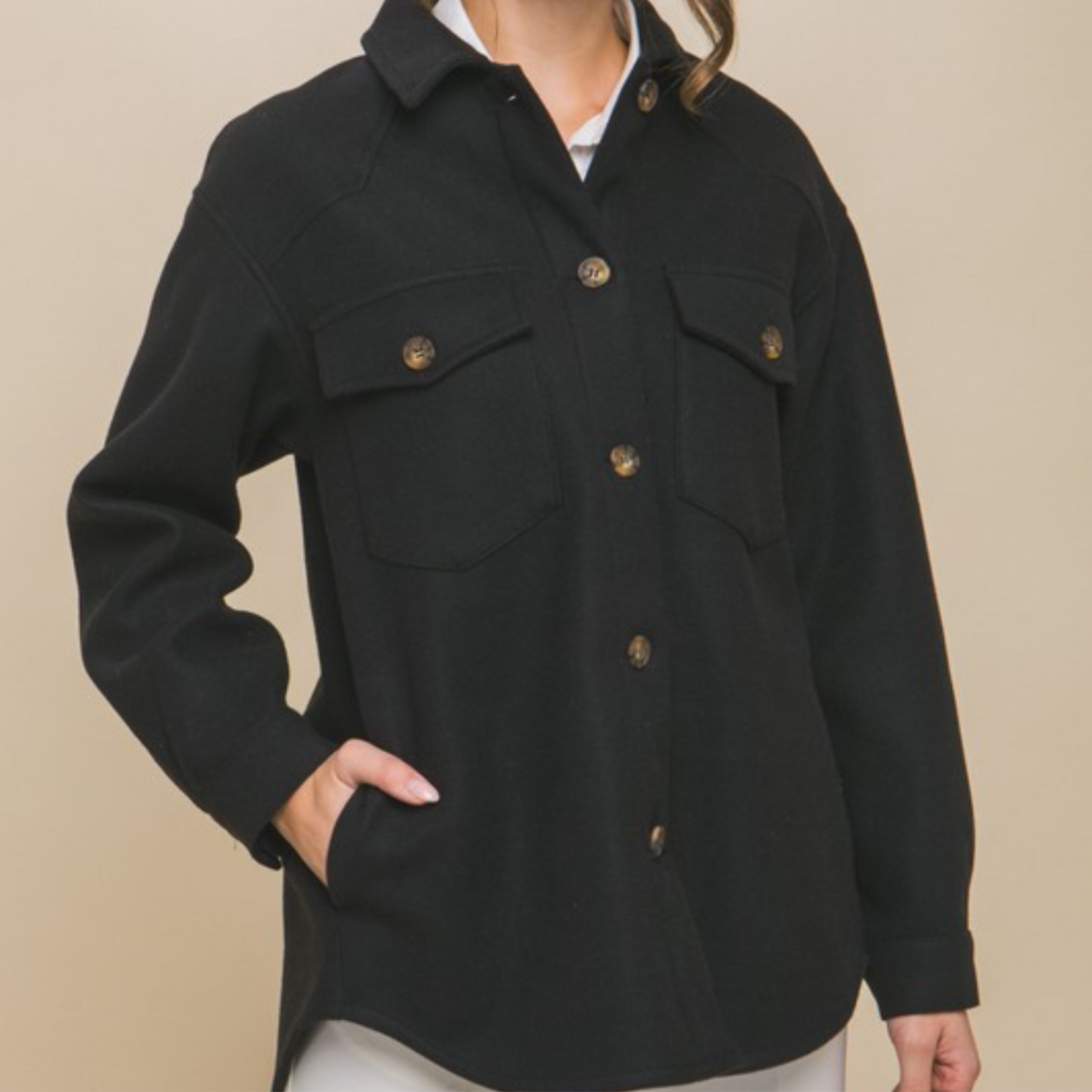 Fleece Shacket (Black)